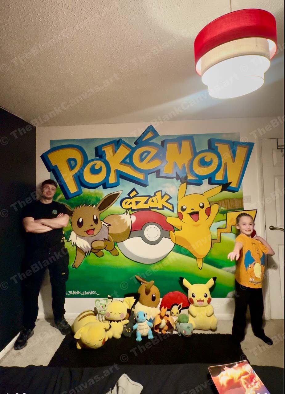 A hand-painted Pokémon mural created as a birthday surprise for Eizak, featuring Pikachu and Eevee alongside personalised lettering in the classic Pokémon style. Designed to capture the joy and energy of the series, this mural brings a playful and colourful touch to the space. The full Timelapse and reveal is on my instagram.